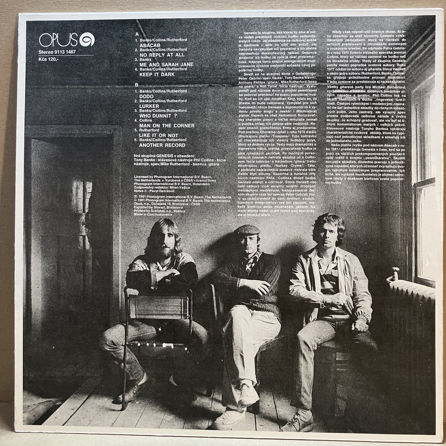 Abacab představuje důležitý bod v diskografii kapely Genesis, kdy se kapela postupně odklání od složitých progresivních kompozic směrem k přístupnějším a modernějším aranžím. Tato gramofonová deska z roku 1981 zachycuje trojici Banks – Collins – Rutherford v období experimentování se syntezátory a rytmickými strukturami. LP deska Abacab přináší skladby jako „No Reply At All“, „Man on the Corner“ nebo titulní „Abacab“, které ukazují posun kapely k popovějšímu rocku s příchutí osmdesátých let. Tento vinyl z produkce vydavatelství Opus patří mezi hledané kousky v antikvariátu i mezi fanoušky skupiny Genesis. Gramofonová deska je v až výborném stavu, připravena obohatit sbírku milovníků klasických LP.