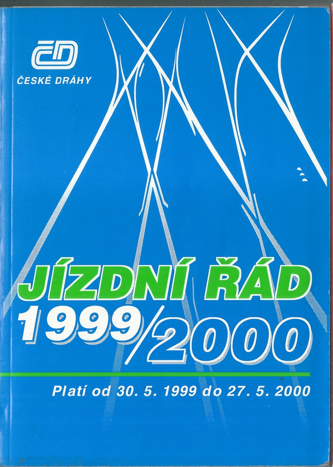 Publikace Jízdní řád 1999/2000 je oficiální celostátní železniční jízdní řád vydaný Českými drahami pro období od května 1999 do května 2000. Obsahuje kompletní přehled vlakových spojů v České republice i mezinárodních spojení. Je určen především cestujícím a odborníkům v dopravě. Díky své struktuře a rozsahu je také vyhledávaným dokumentem pro historiky dopravy a sběratele železničních materiálů. Jízdní řád 1999/2000 zachycuje provozní stav železniční sítě na přelomu tisíciletí.