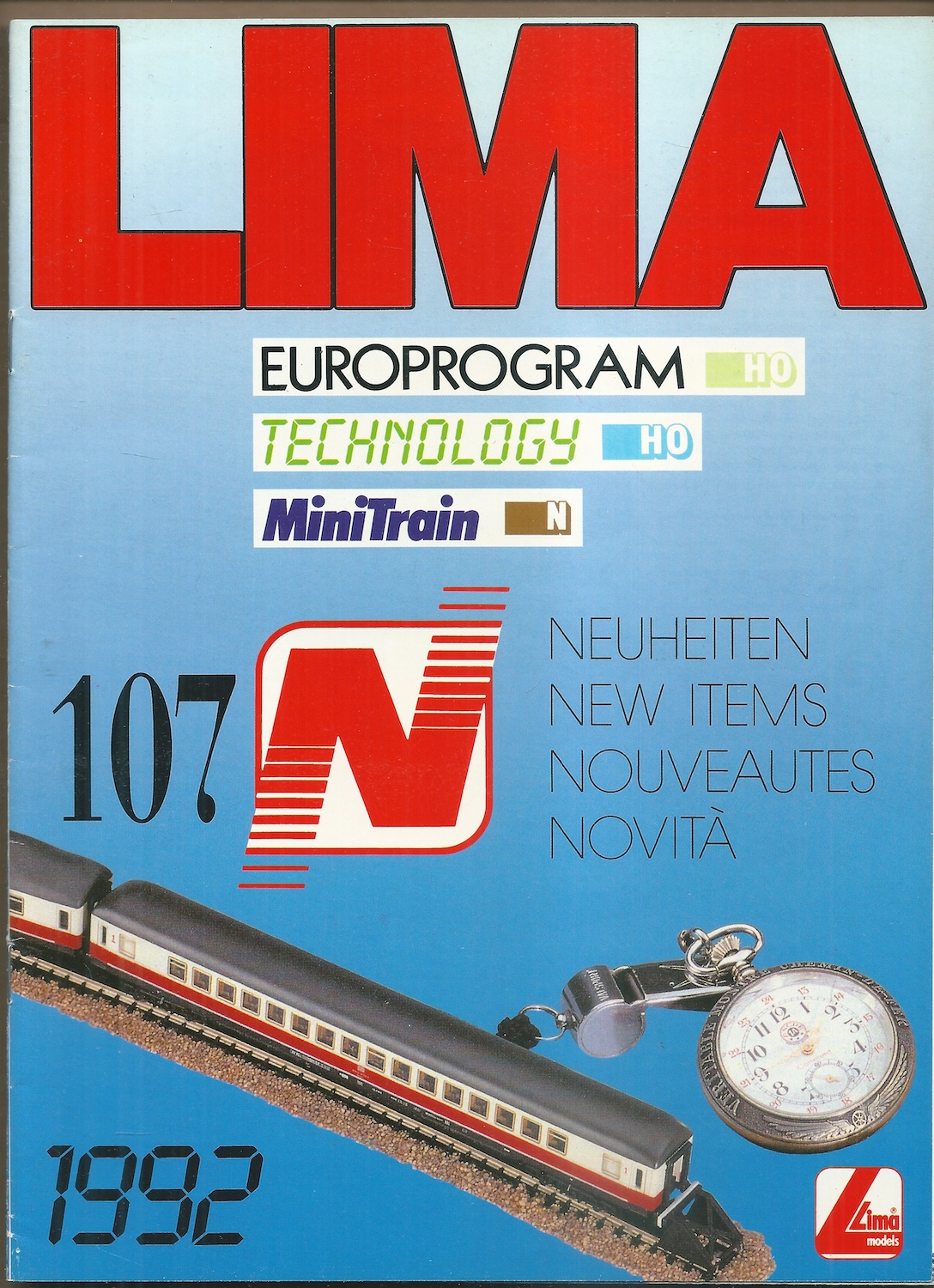 Katalog LIMA – Europrogram HO Technology MiniTrain N 107 z roku 1992 představuje novinky modelové železnice v měřítku HO a N pro daný rok. Obsahuje barevné fotografie modelů vlaků a vagónů, technické specifikace a katalogová čísla. Publikace je určena sběratelům a nadšencům do železničního modelářství a přináší ucelený přehled sortimentu známé italské značky Lima Models. Vizuálně bohatě zpracovaný katalog odráží dobový design i důraz na přesnost modelového zpracování. Ideální doplněk sbírky každého modeláře či fanouška historických železničních modelů.