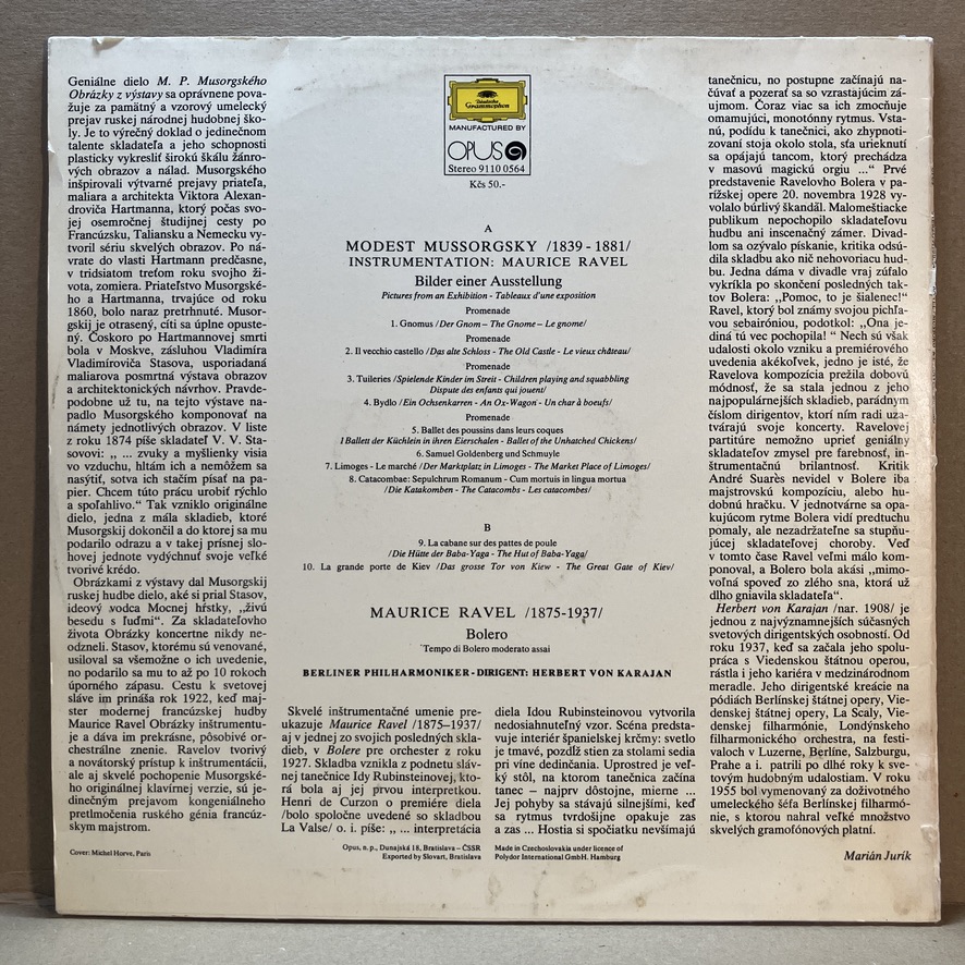 ALBUM MUSSORGSKY – RAVEL: TABLEAUX D’UNE EXPOSITION / BOLERO V INTERPRETACI BERLÍNSKÉ FILHARMONIE POD TAKTOVKOU HERBERTA VON KARAJANA VYDALO V ROCE 1977 VYDAVATELSTVÍ OPUS