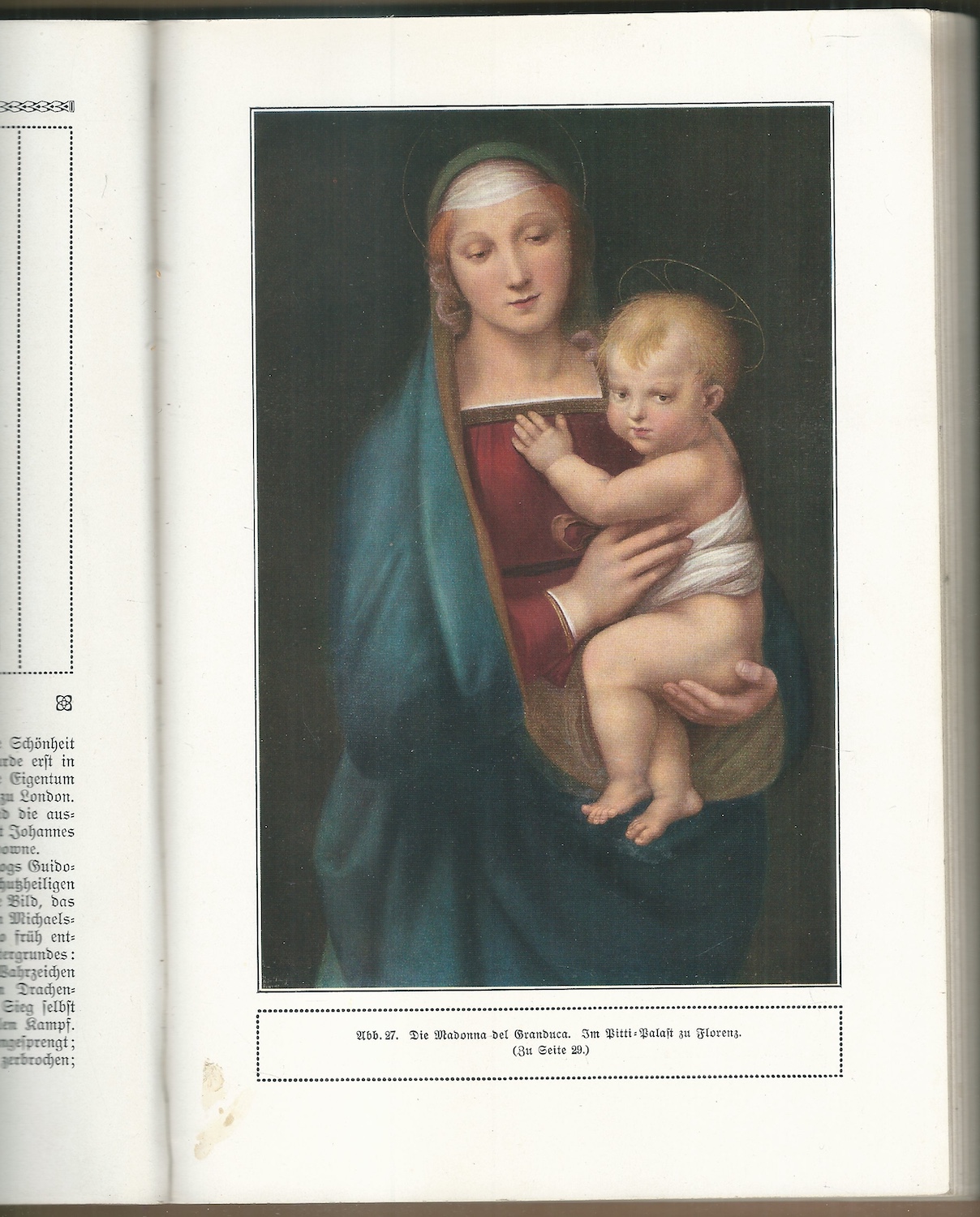Monografie *Raffael* od H. Knackfusse vyšla jako součást řady *Künstler-Monographien* a představuje život a dílo italského renesančního malíře Raffaela Santiho. Publikace obsahuje množství obrazových příloh, včetně barevných reprodukcí slavných děl. Text je psán německy a kniha je určena milovníkům výtvarného umění, historikům umění i sběratelům starších uměleckohistorických tisků. Vydání z roku 1914 představuje reprezentativní příklad dobové odborné produkce.